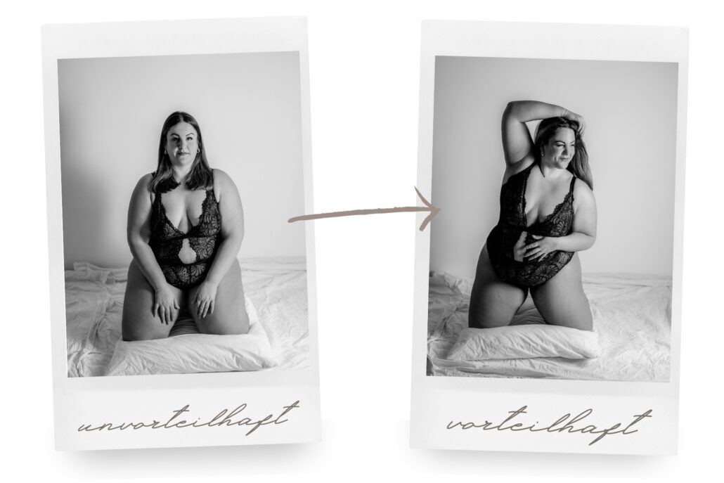 Keine Sorge: Du musst keine Erfahrung mitbringen oder Posen „können“. Die Beispiele helfen dir lediglich dabei, ein Gefühl für Bildsprache, Haltung und Ausdruck zu bekommen. Während deines Shootings wirst du behutsam angeleitet – ganz in deinem Tempo und passend zu dir.